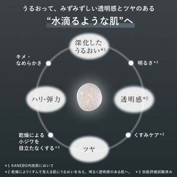 For skin that is fresh, translucent, radiant, and brimming with life, like dewdrops. *1 According to KANEBO’s internal technology, up to the stratum corneum *2 Up to the stratum corneum